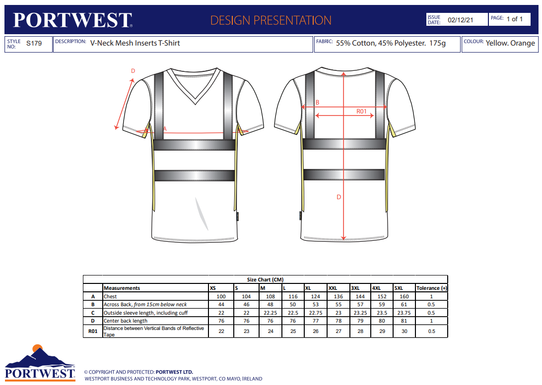 Datasheet - https://documents.portwest.com/datasheet.php?style=S179&lang=GB&itemcol=S179ORR&facility=902