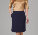 A-line skirt with centre back vent, slanted side pockets, twin buttons on waistband